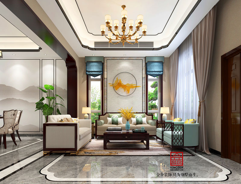 奥森观澜壹号500平别墅装修轻奢风格实景图