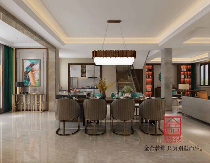 大者别墅装修新中式风格餐厅效果图