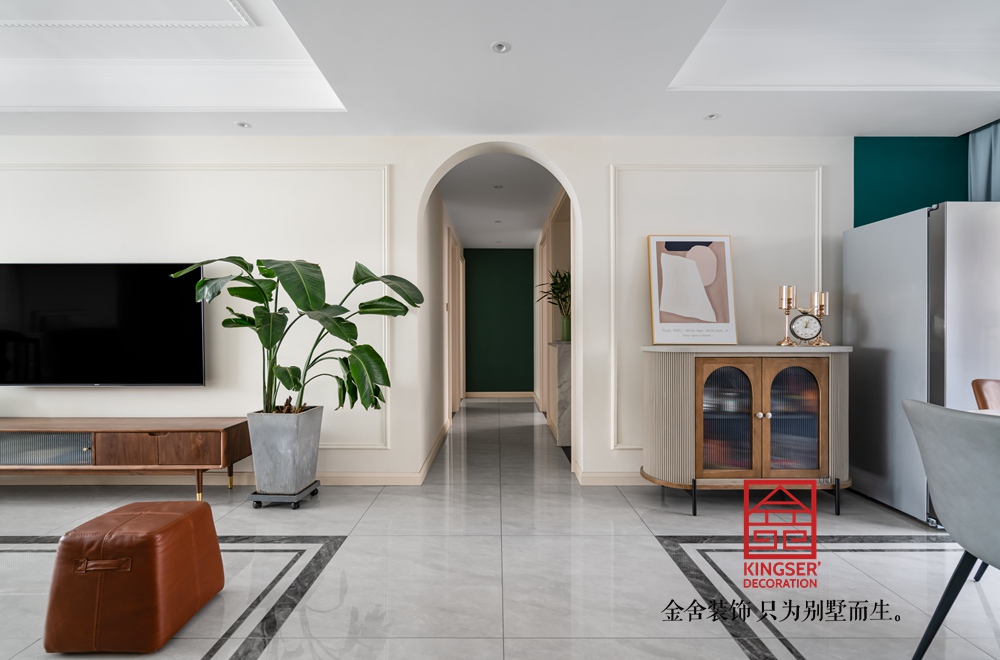 我们希望在设计每一个空间时,不仅要让空间本身充满想像,同时营造出的氛围能感染周围的每一个人。本案作品将复古与摩登两种元素结合,不仅表现在硬装,更多是通过软装的造型及色彩来表达对精致生活的态度。
