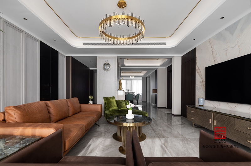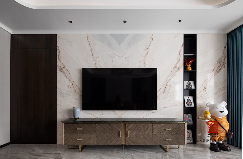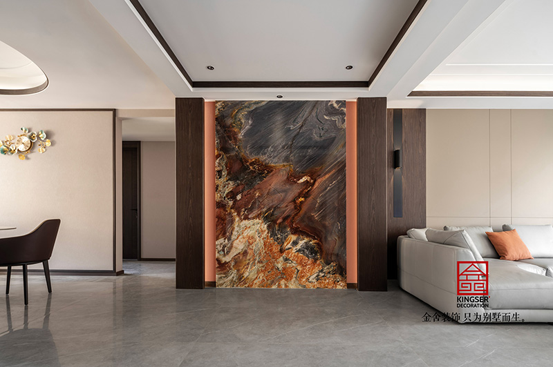 现代轻奢与当代东方的完美结合 硬包木作与奢石的极限混搭 塑造出浑然一体的家装体验