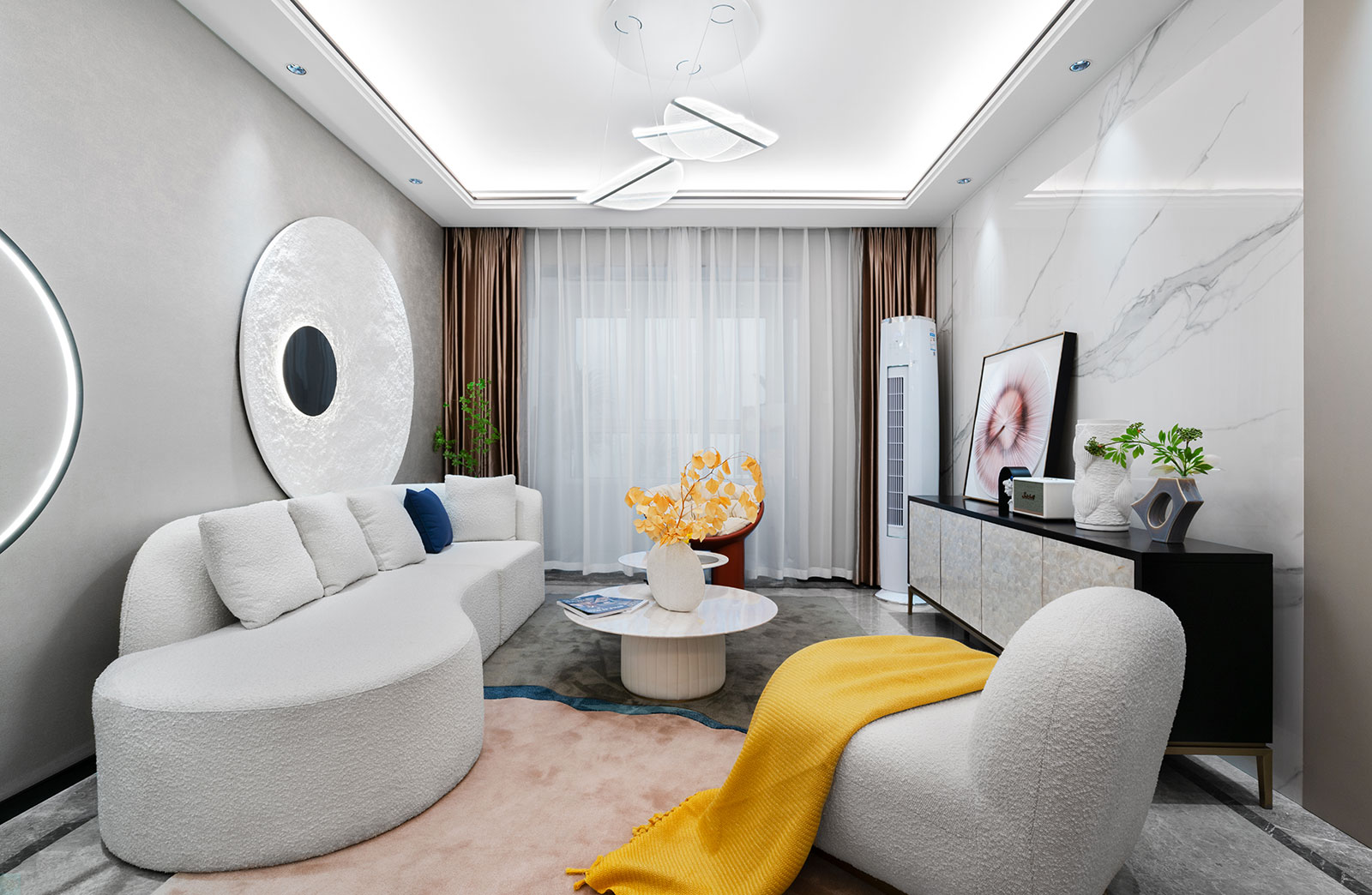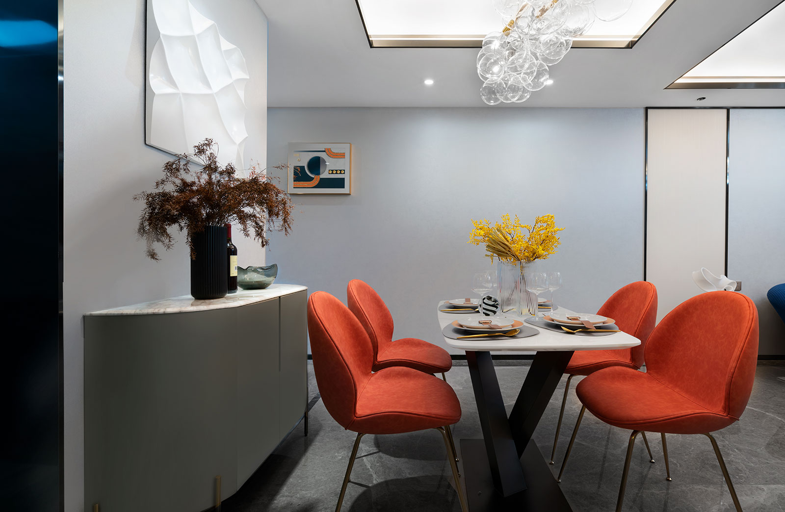 花语原香90㎡现代轻奢样板间展示 现代风与包豪斯式风格相结合的概念 摒弃多余的装饰,简约而不简单 鹦鹉螺国际软装 给您全世界美好