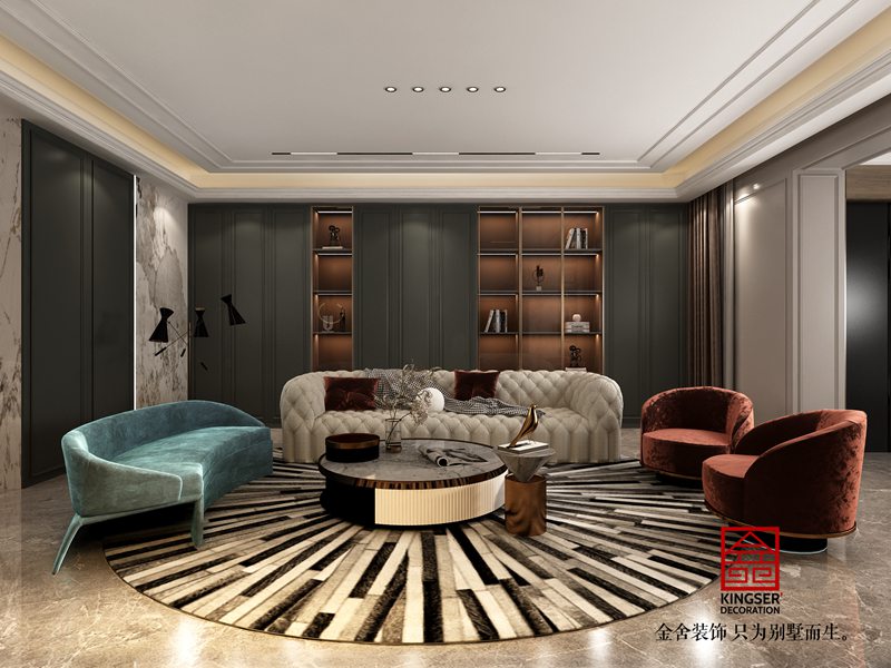 晋州壹号公馆装修美式轻奢风格客厅效果图