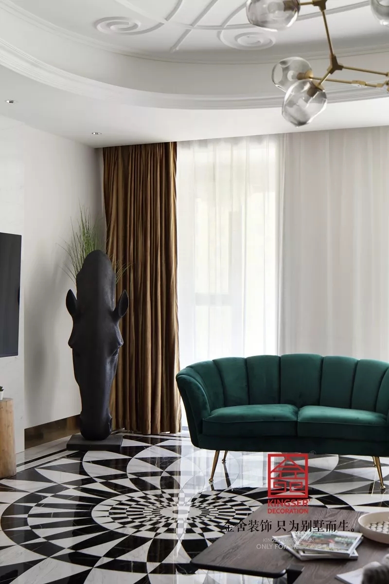 地毯:应注意地毯的质地和花色,通过铺设一张较大面积的地毯来进行地面空间区分。注意与家具色调保持和谐一致。