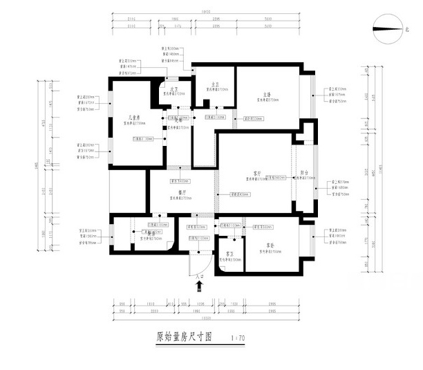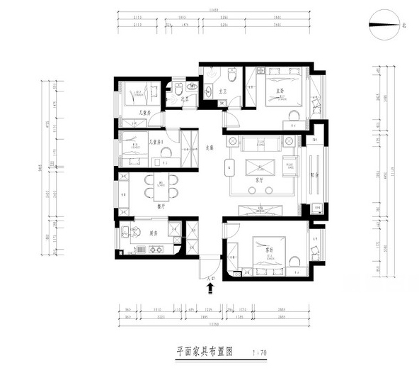 此户型采光比较好,但是各个空间功能区域分布不明确,空间利用不充分。主卧的衣帽间空间狭窄