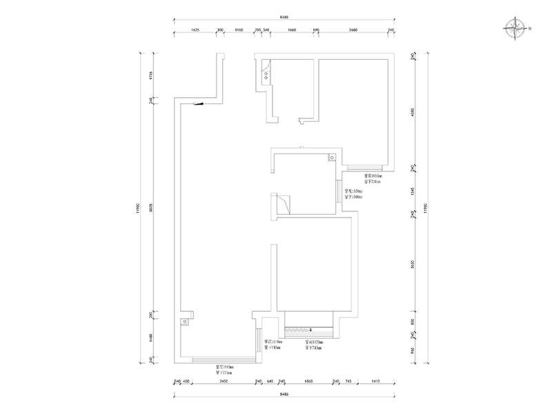 1 主卧室门在电视墙上,可做隐形门处理,使电视墙居中