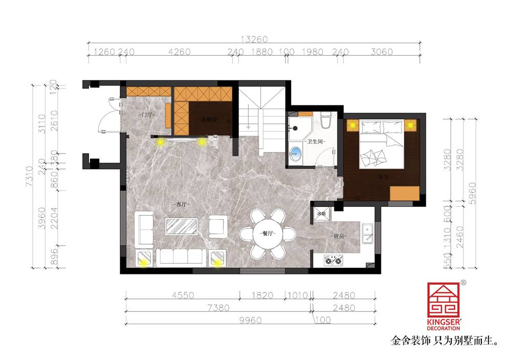 划分原始门厅为两个独立空间,一个为独立门厅,另一个为储物衣帽间。