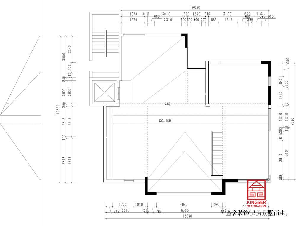 厨房相对较小、顶部阁楼采光较弱、空间使用率较低,楼梯光线较暗,没有和楼下产生互动。