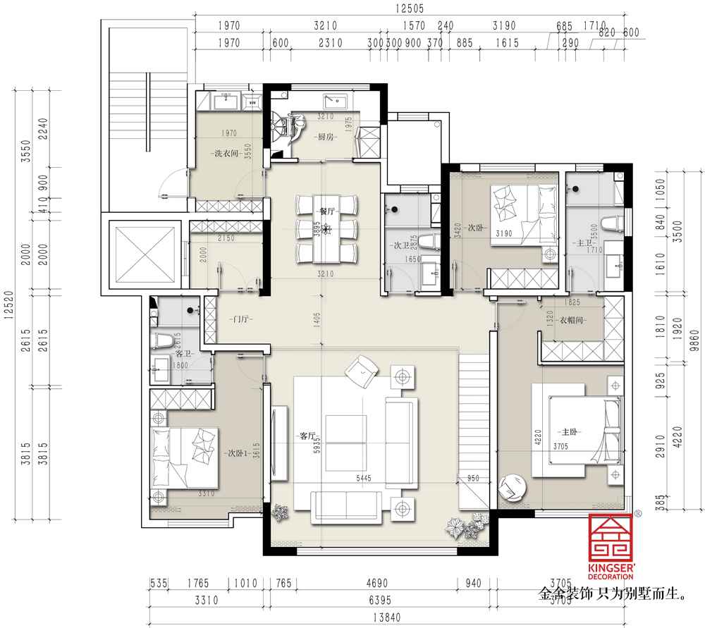 主卧从狭长的空间内增加了一个独立衣帽间。