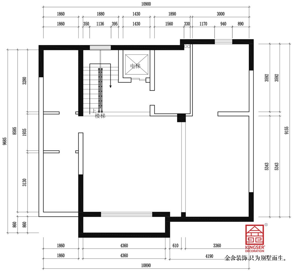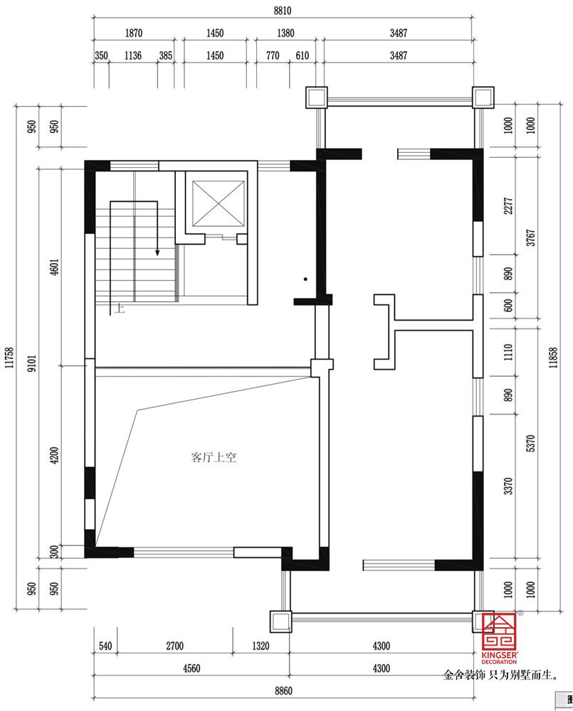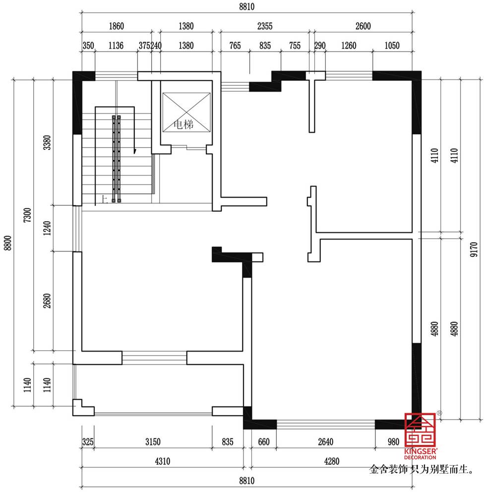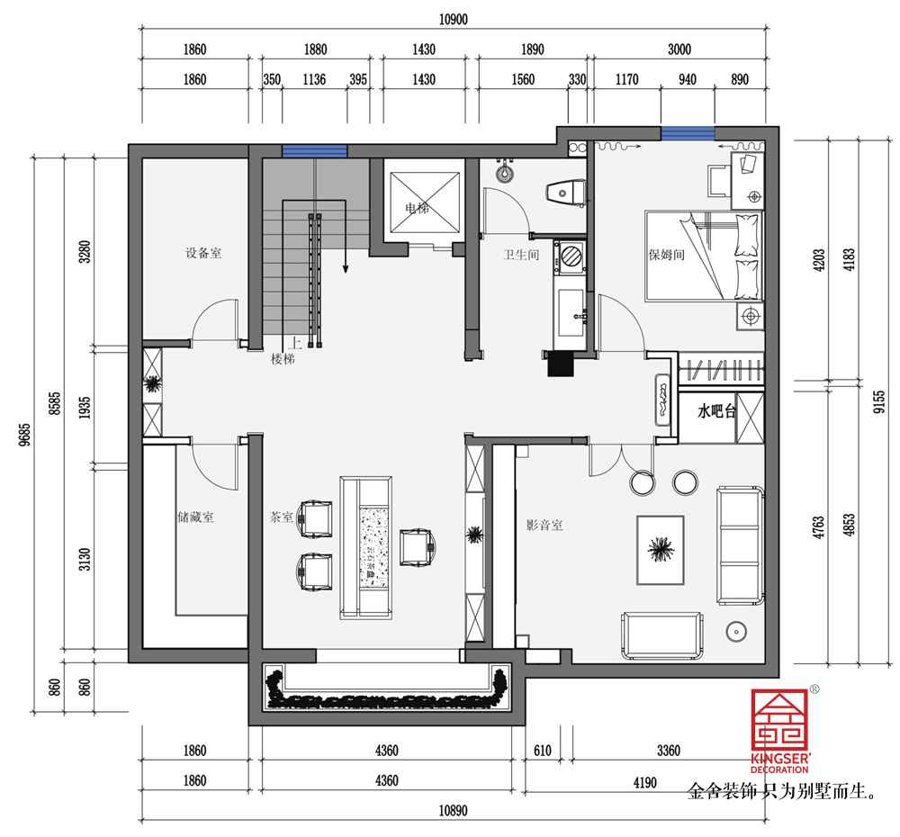 ② 利用采光不足增加影音室。合理利用采光与通风将天井附近区域划分为茶室。