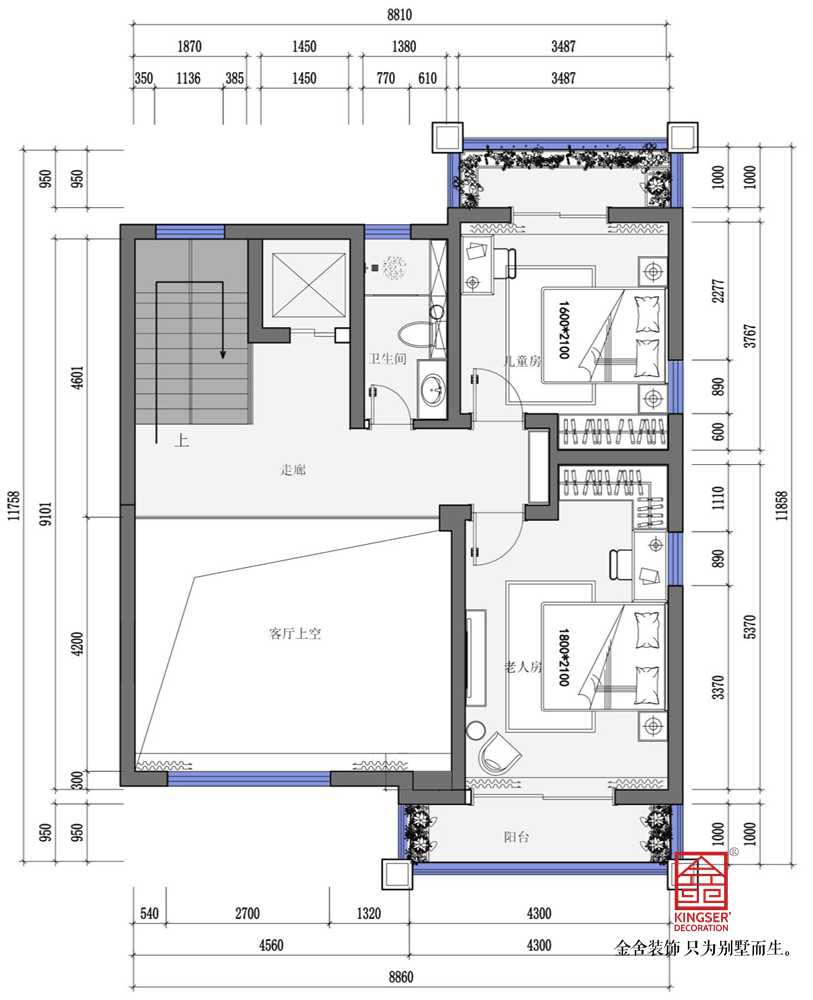 ② 相较与二楼有了一个公共空间,同时连接阳台。