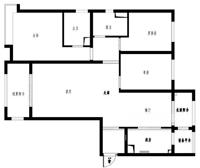 此户型结构整体比较方正,南北通透,采光较好,有明确的区域空间功能。入户独立鞋帽柜的设计,方便了主人的出行所需要的诸多需求(如:钥匙、包、雨伞等)。前后双阳台的设计,使空间更独立,北侧阳台,满足主人正常的生活需求,南侧阳台,可根据主人的需要,打造休闲或者健身空间。局部空间需要调整,厨房、餐厅尺寸较小,不能满足主人正常的生活需求。打通两个空间当做统一整体来设计,使空间增大,收纳及使用功能变丰富。