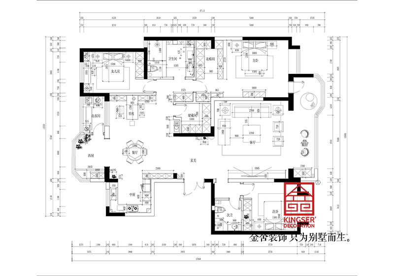 1.应业主要求改造了一部分主卧的卫生间,并把女儿房与主卧的卫生间合并。给主、卧内增加了一个衣帽间,使主卧看起来十分大气。