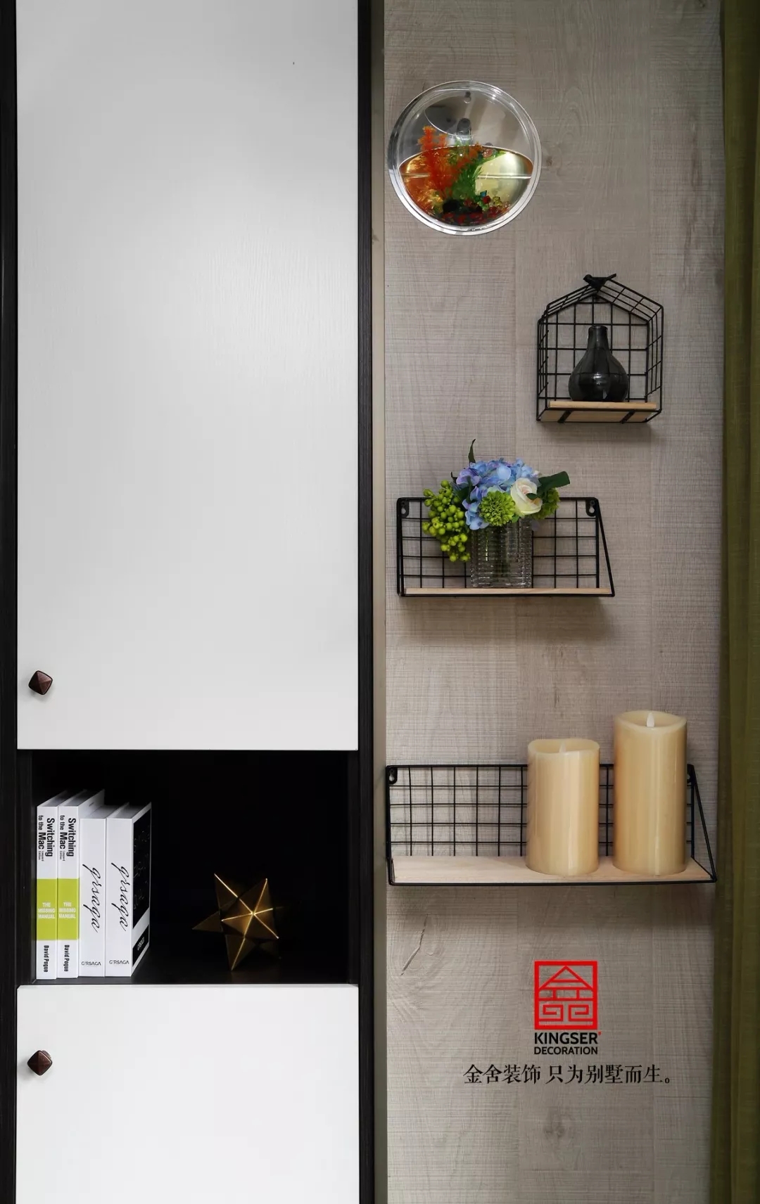 充满个人意味的设计手法,将色彩巧妙的置入软装窗帘的布置之中。在灰色与皮质家具的空间基调下,妆点着些许布艺感的靛蓝、一丝暖心的蓝与金,恰到好处的用色,如同画龙点睛的神来之笔。包括错落有致的家居布置与墙面的细节处理都进一步增添了设计的维度和广度。