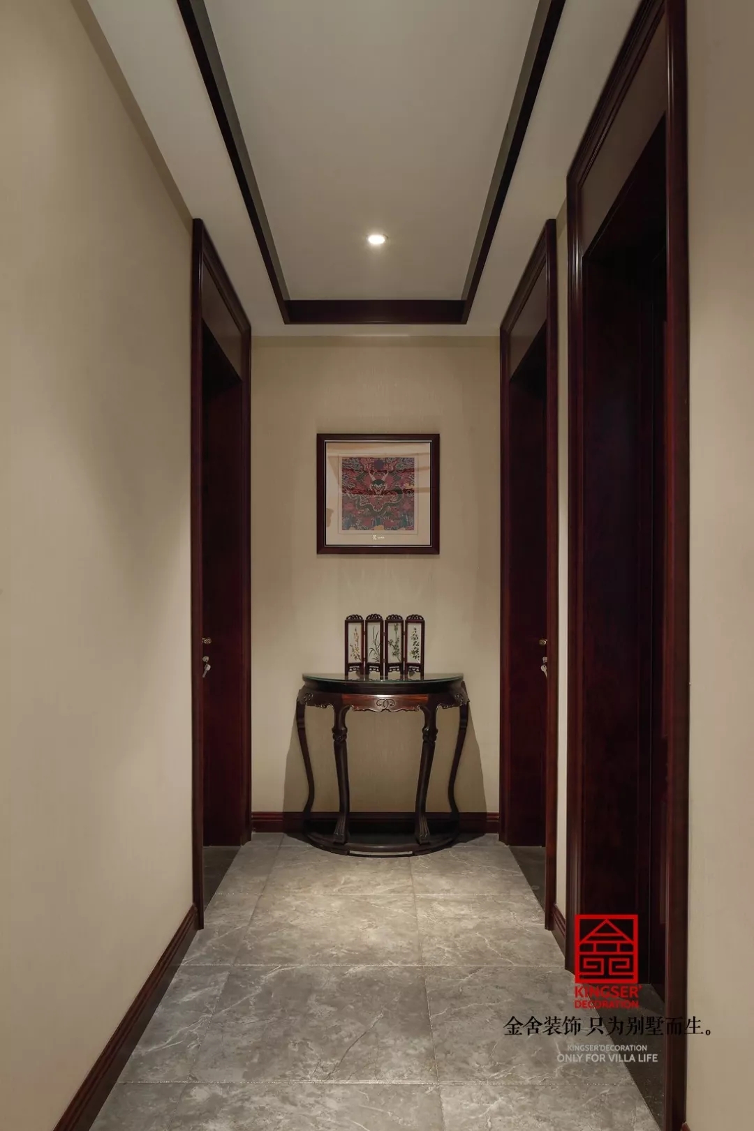 玄关依然是对称的风格,玄关和背景墙都被凸显的非常有意境,从木质的桌子到整个空间的设置,仿青砖的地砖,让整个空间中透露出一种古朴的意味,历史的沧桑感迎面而来,让整个空间即有特色又能感受到设计师特有的匠心。