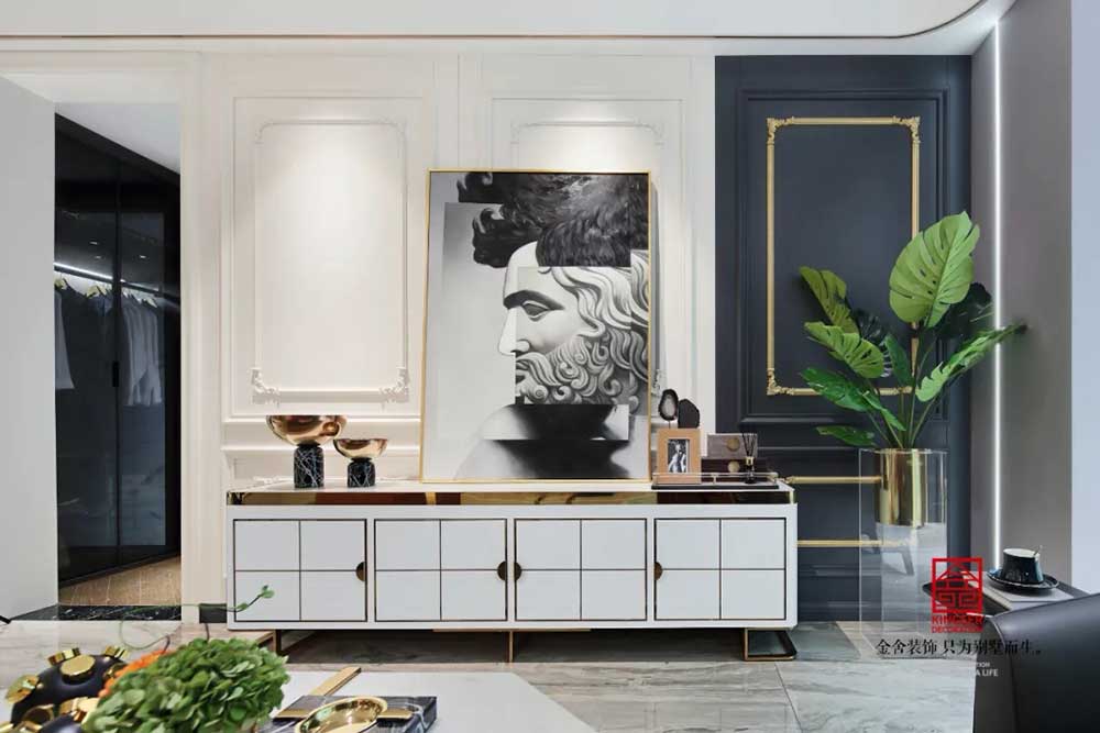 石家庄taptapvip入口装饰-亨伦观唐名邸118平米新古典风格装修实景。打破了传统的新古典风格,将元素简化到极致,让风格随着居住者而变化,生活的味道自然会随着设计的发展而不断变化。新古典中“古典”这个词是家居的核心,新古典风格化繁为简,从整体到局部,无论是精雕细琢,还是镶花刻金都给人一丝不苟的印象。