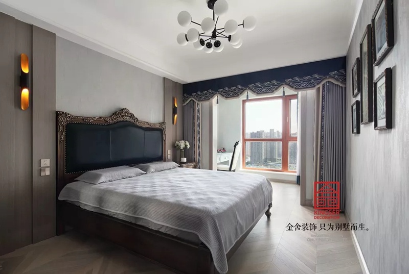 本案在设计中摒弃繁琐装饰带来的喧嚣疲劳,设计出古典优雅的感觉;家具造型厚重,比例适中,有如威尼斯水的柔情,桥的清秀,清新畅快。经典元素与现代主义的曲线主义,让家具充满了无拘束的现代味道与简洁的古典灵感,满足了久经世事、品位生活的渴望,细节处处展现着主人的温柔、妩媚。