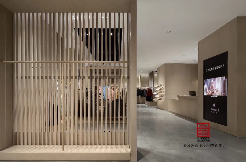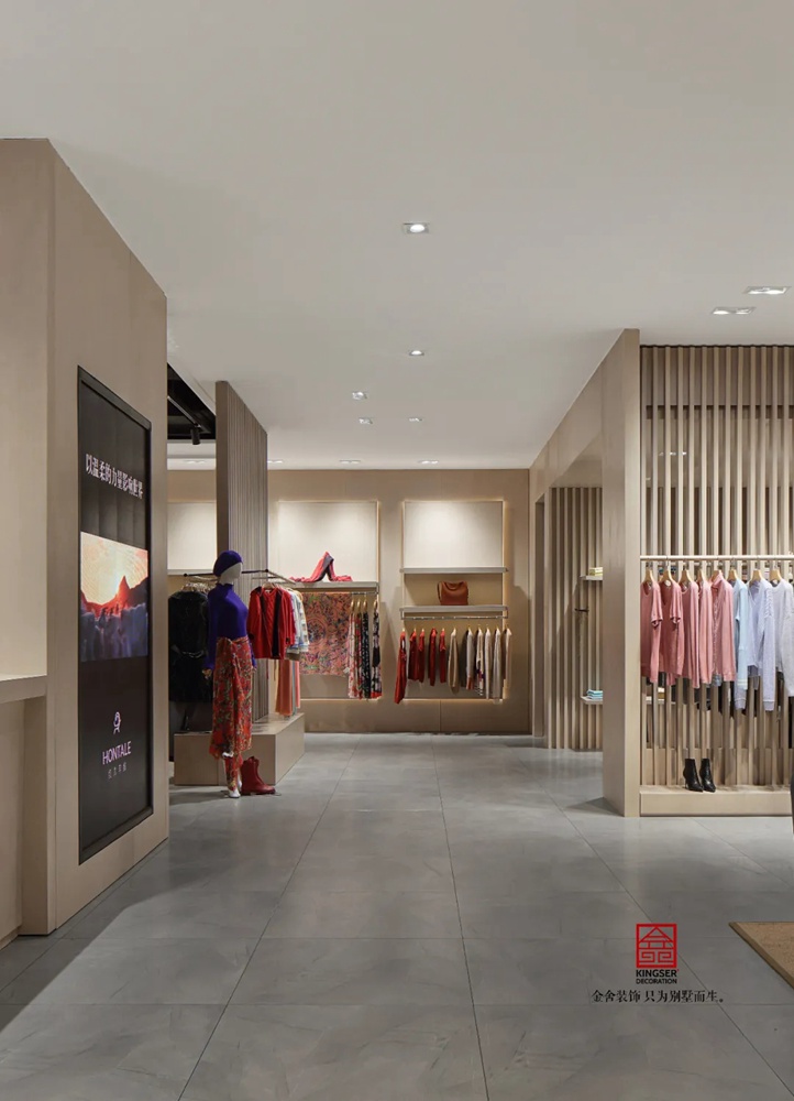 在该案的设计上设计师深谙整体与局部,线条与灯光,色彩与配饰之间的关系,把握整体而不忽视局部,突出线条而不削弱灯光,彰显原木色彩而不漏掉配饰,匠心独运打造出一个让人心驰神往的购物天堂