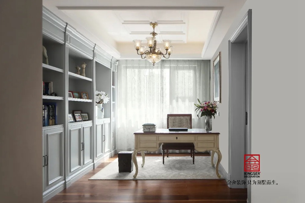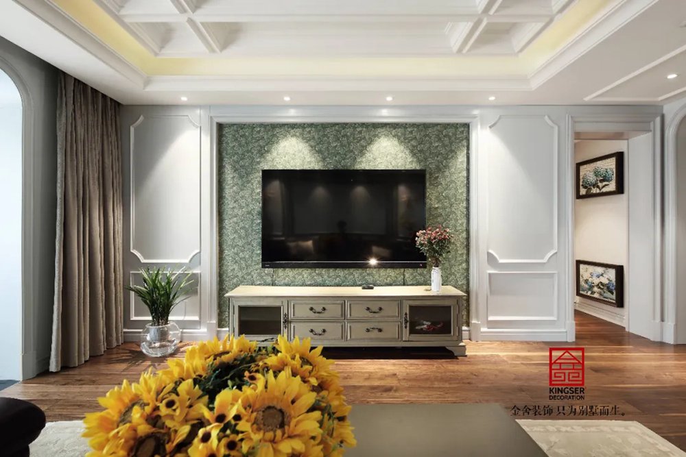 客厅绿色的点缀在静谧的空间里恰到好处,完美之处在于步入入户门的这一刻,映入眼帘的皆是经典简约美式元素,圆润的造型、浪漫的素色基调、温暖的木质材料、极具讲究的家具和灯饰。这种享受就好像是在回味经典电影中的浪漫情节,灰黄色的记忆,罗曼蒂克的生活。