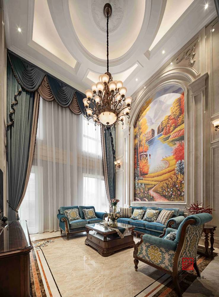 客厅以浓厚的怀旧感情和大胆的革新精神对欧式古典语汇作了新的阐释,以极度的挑高加上典雅的家居配饰,把高雅的古典情趣和精巧的浪漫主义联系在一起,复活了欧式风格的精魄。同时在营造欧式风格的氛围时,以一些有特色的软装点缀,比如深色的实木家具,色彩鲜艳的布艺沙发,都是欧式客厅里的主角。自然垂落的窗幔、精美的壁画……仿佛置身于欧洲宫廷,高贵奢华油然而生。