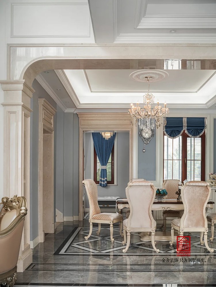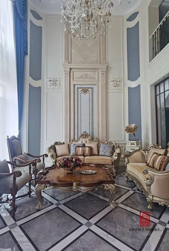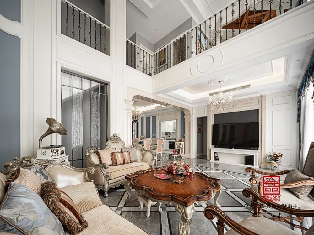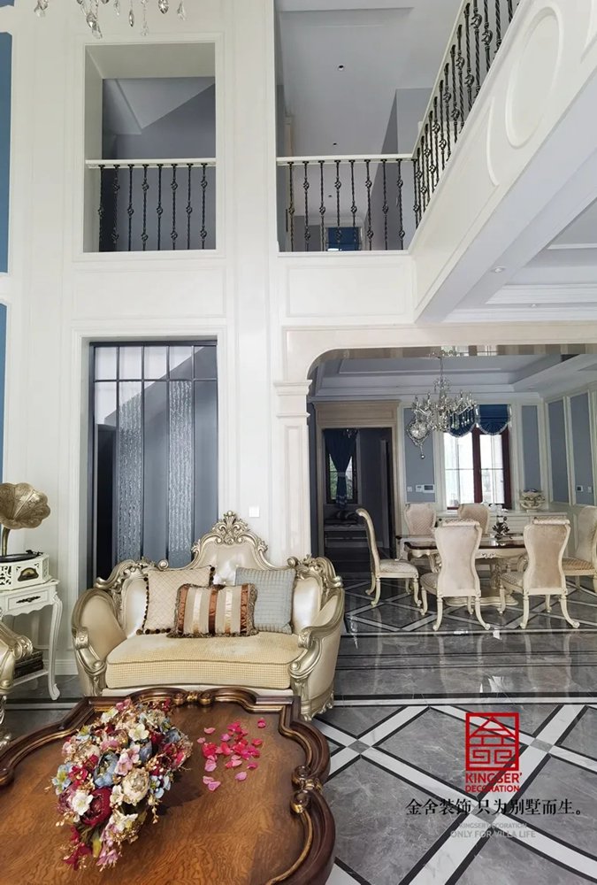 别墅的生活可以很丰富也可以很简单,淡雅的颜色象征高洁的品质,落落大方的装饰点缀着幸福的梦,每一个材料的选择,每一个家居的搭配都是生活的趣味与感慨,高挑的空间中承载了人们美好的未来。欧式的沙发,搭配同色系的碰撞,优雅,华贵,但是恰到好处。