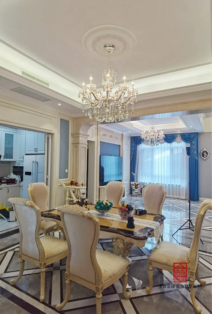 自然典雅高贵的气质,浪漫的情调是本案的主题。空间墙面主要用材为大理石+壁布,绚烂的布艺靠垫,配以姿态百般的饰品,都凸显出了业主追求自然,崇尚乐活的生活情调!干净明亮的色彩象征着一种生活态度,生活的真谛不在于奢华的享受,在于生活的舒心和内心的平静!