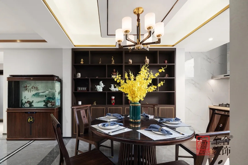此案例为石家庄装修公司-正定墅洋居礼240㎡新中式风格装修实景。岁月的味道,融入了太多了的情感,有名利,有思念,有得失,有感伤,人生的不完美正是有这些因素所交织创造的,可以说活在这个世界上每天都在跟自我较劲,今日的自己一定要比昨日的自己更优秀,不光是为了自我的肯定,也是为了能够找到那个属于自我的定位与生活。人生的感悟萦绕在脑中,就像永远躲不开的“人生三个问题”一样,必然经历但是无解。