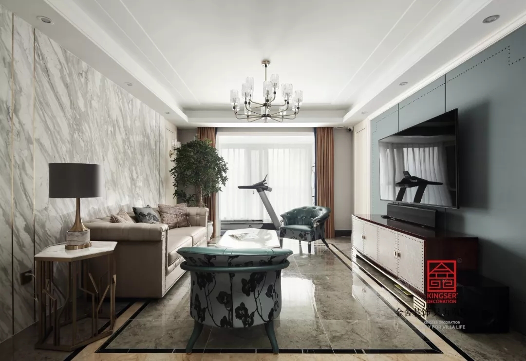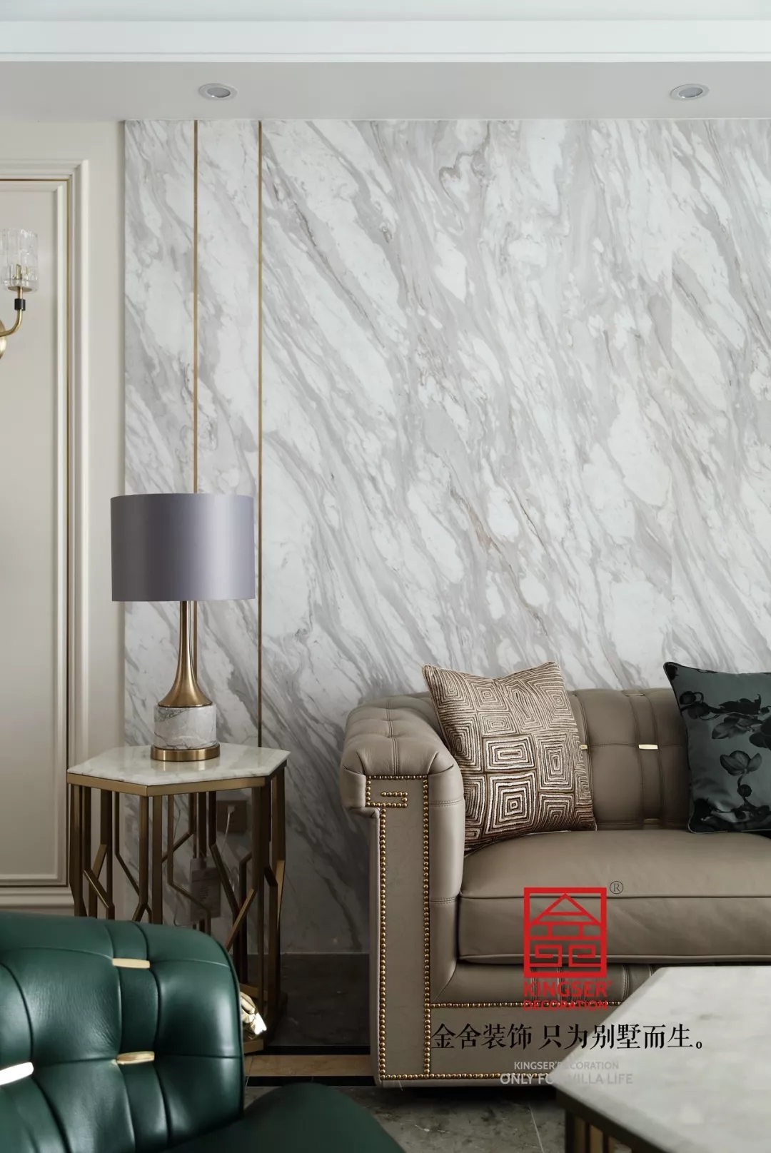 立于纷扰的世界,人们马不停蹄的寻找独属自我的生活方式,空间成为了投射自我的一面镜子。客厅中的事物就是一个个满足生活需要的元素,因为有他们存在我们才有现在的生活,一深一浅一素一浓的沙发在阳光下奕然生辉,融合多色调的绿色夹杂着自然纹路大理石,为整个空间创造出一种自然风十足的环境。
