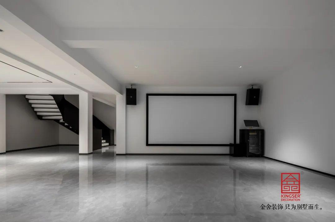 负一影音室延续了整体空间配色,就好像是正在绘制的漫画,黑与白此时正在交替的创造着美与和谐。