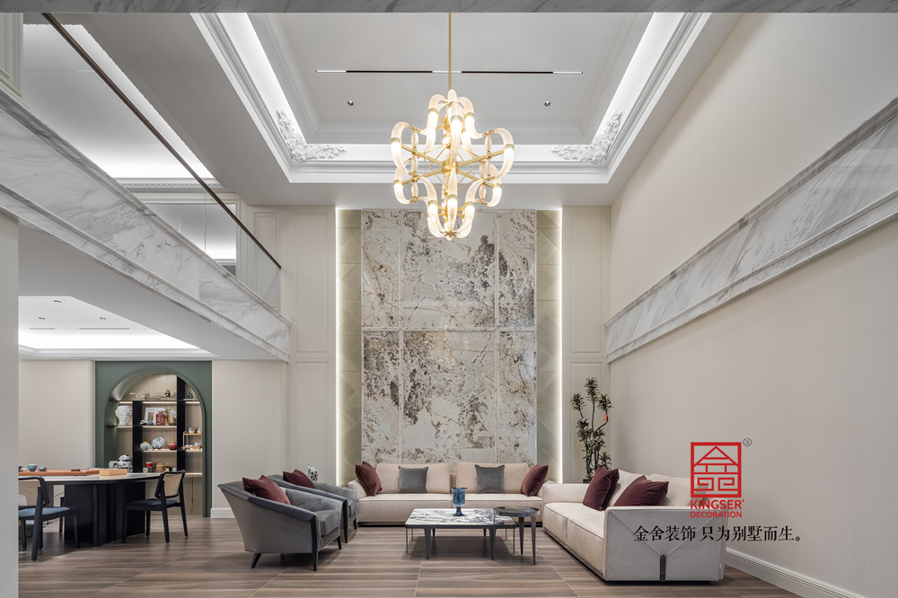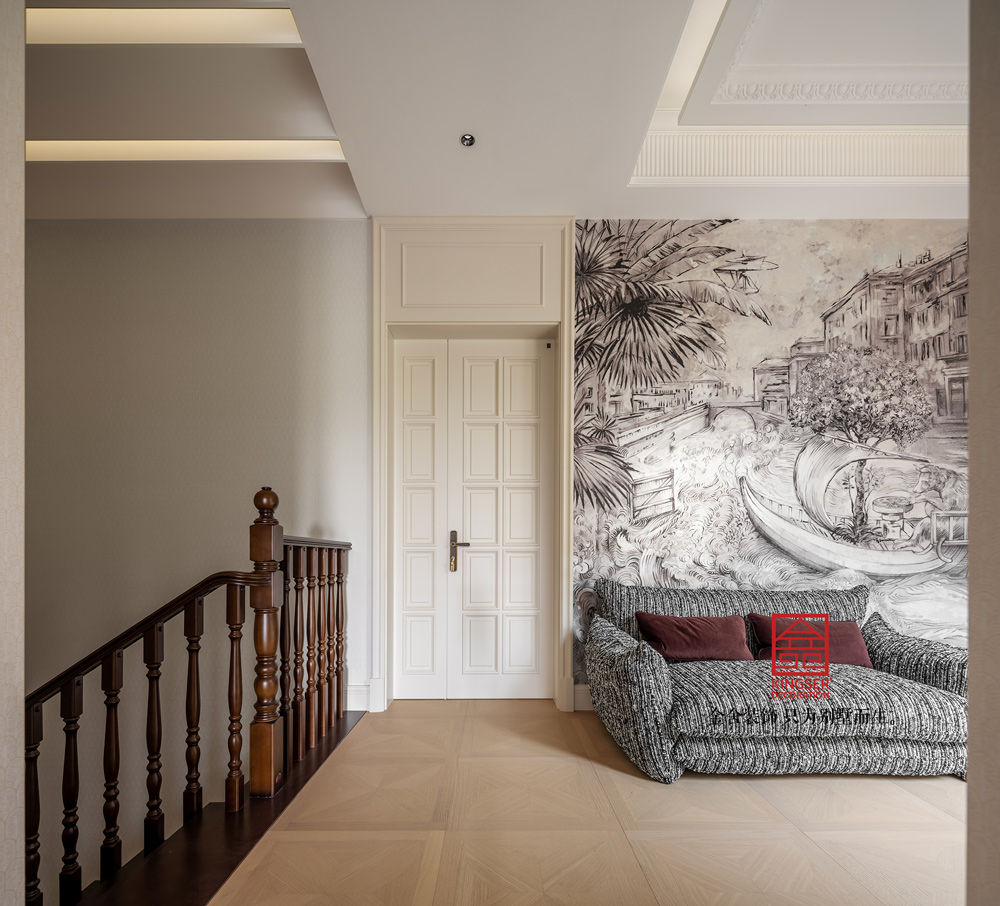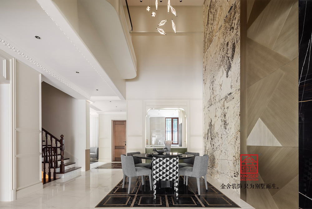 本作是御河上院600㎡的别墅设计,从设计到施工再到完工经历了一年半的时间,可谓是真的把每一个细节都考虑的十分通透,每个小的摆件,每个造型,每个材质的运用都真真切切的考虑周全。