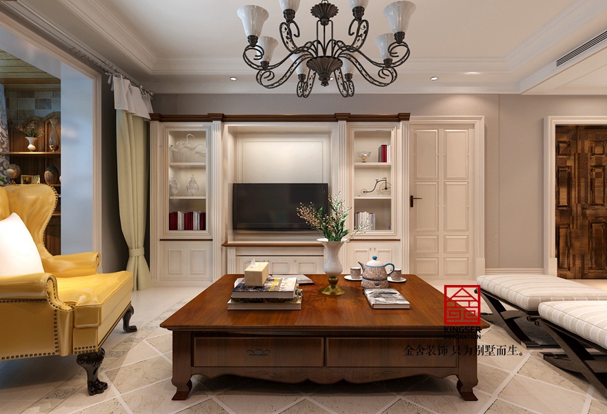 作为家居的休闲阳台,是家里一个点睛之作,神来之笔的五彩小砖的应用,配以浅咖色系薄沙,舒适的躺椅,一杯浓浓的下午茶,会让人忘却一切烦恼,一切琐碎,享受不尽的惬意与舒适。也极大的与客厅大面的高冷形成鲜明的反差,对比之下更有意味,更值得回味。软装配饰是装饰家居的很重要的元素,不规则沙发位的摆放,加上精心布置的一把明黄椅,让人在冷静的空间里眼前一亮,一抹跳色给人带来意想不到的惊喜。奶油黄色的家具和门,使得空间更加的温暖,显得更加的别致有寓意。也彰显这件客户对细节,对生活的一种要求和品质。.