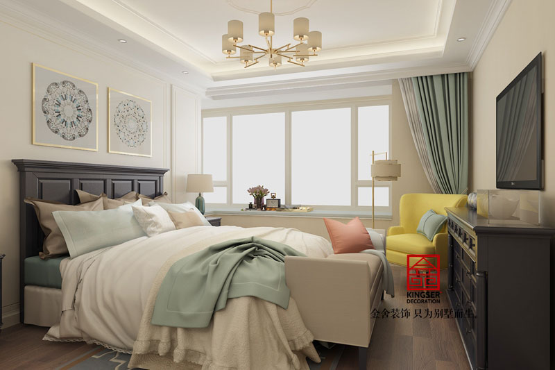 -荣盛华府400平米简美风格装修效果图。通过与业主的深入沟通,同时围绕着业主对房子功能的要求,合理的对空间进行改造与功能划分。在设计手法上,没有讲究太多的技巧,而是保持简单的信念,捕捉光线,取材于自然,大胆而自由的运用色彩、造型。本案的设计重点是会客空间、门厅,餐厅的空间互通与交流。材质的选择和色彩层次以美式风格为基调,沉稳大气着色,偶有莫兰迪色系穿插,颇添活泼靓丽感。在融合古典情怀和现代时尚的设计美学中,营造典雅舒适大气的空间氛围。阳光透过质地轻盈的纱幔窗帘,散漫的洒在整个客厅,星星点点,唯美惬意