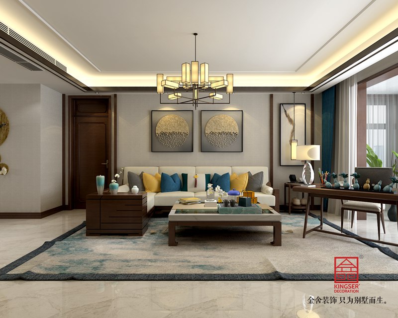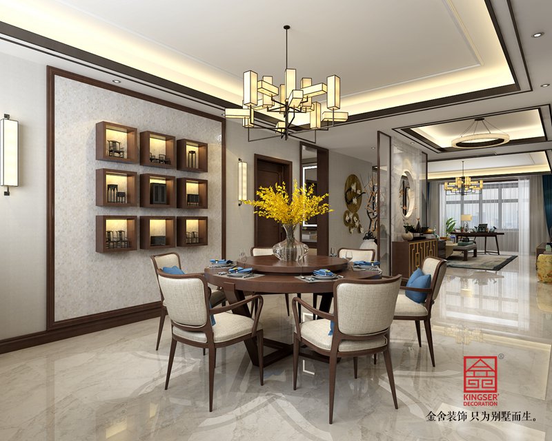 本案为石家庄taptapvip入口装饰-御河上院176平米新中式风格装修效果图。位于河北石家庄正定新区的一套大平层豪宅度假房。根据项目的特点,设计师在设计风格定位时采用现代中式风格,通过合理的空间规划,材质与色彩的精心拿捏,营造出一处富有尊贵感和人文特色的中国式家居空间。