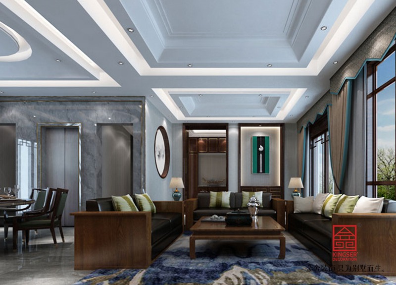 设计说明:此案例为石家庄taptapvip入口装饰-西山林语303平米中式风格装修效果图。新中式风格将中国传统文化的元素融入到现代人的生活环境和审美上的一种新型风格,这样的设计体现出传统文化的元素,又能表达现代人对古典文化的喜爱。现在越来越多的人开始喜欢这种风格的设计,因为新中式是以现代人的审美需求来打造富有传统韵味的事物,让传统艺术在当今社会上得到合适的体现。开放式的厨房,最大限度提升业主对生活的热爱和创想。