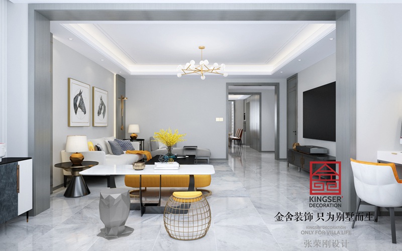 室内空间开敞、内外通透,在空间平面设计中追求不受承重墙限制的自由,没有过分的装饰,一切从功能出发,讲究造型比例适度、空间结构图明确美观,强调外观的明快、简洁。体现了现代生活快节奏、简约和实用,但又富有朝气的生活气息。