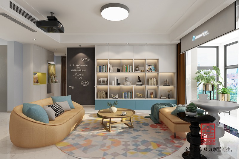 随意的沙发摆放,可以一起坐着聊天可以和孩子一起做手工看书可以放下投影来看电影。更加符合年轻人的生活方式