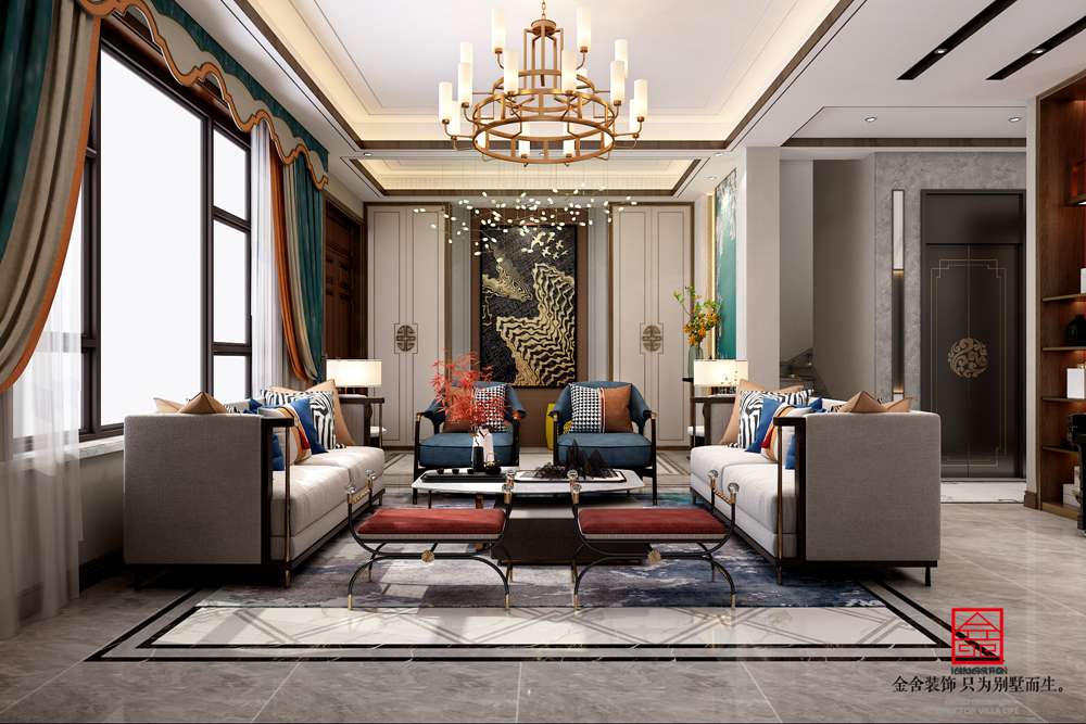 设计说明:此案例为石家庄taptapvip入口装饰-大者联排别墅300平米中式风格装修效果图,传统文化和东方美学的诠释,将屋子打造成了一个具有记忆点的新东方生活体验空间。让人只想在这东方诗意里,隔绝一切喧嚣杂念,回归最真实恬淡的心境。古典质感与现代潮流相互碰撞,让整个厅堂剔除繁杂、告别沉闷,处处散发着简洁优雅、