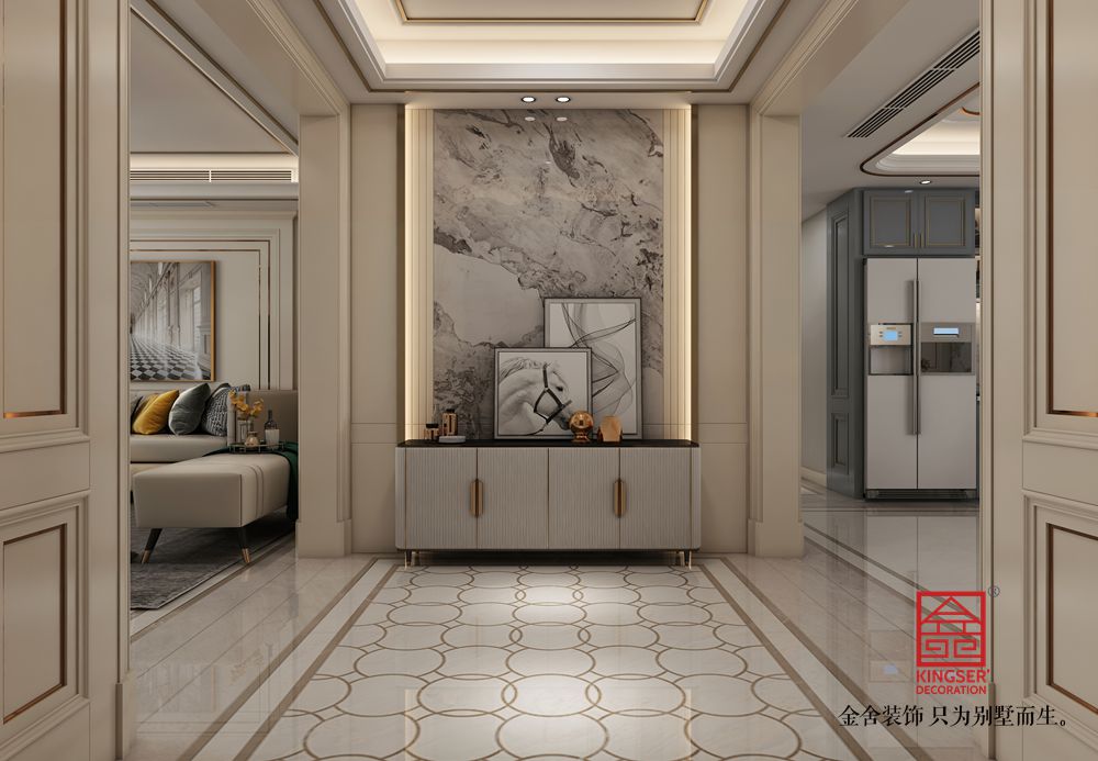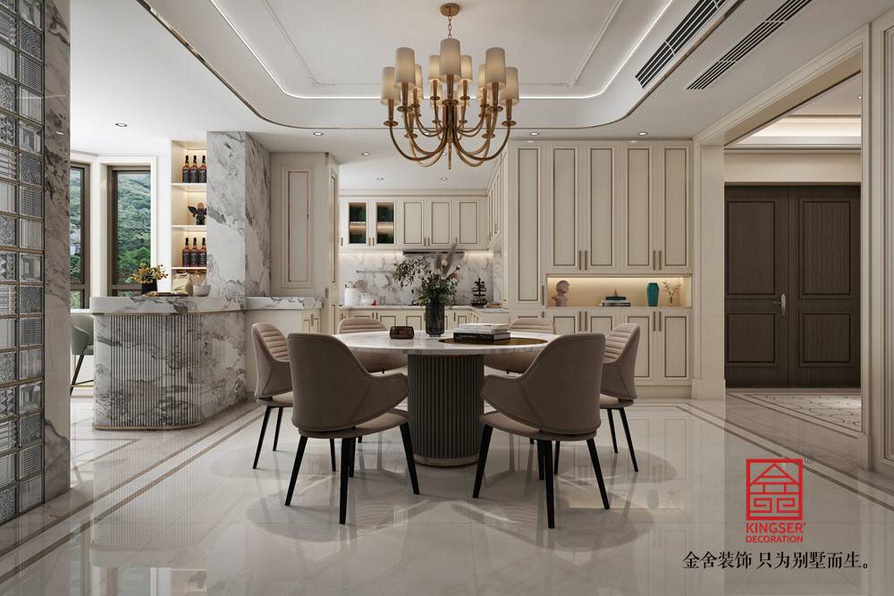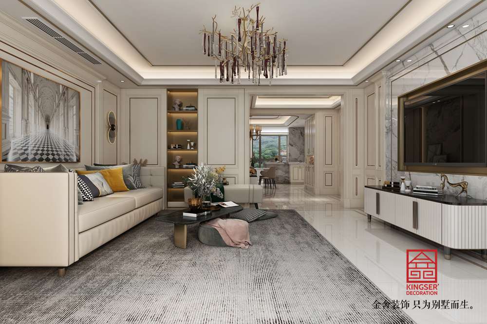 设计说明:此案例为石家庄taptapvip入口装饰-荣盛华府205平米美式风格装修效果图。美式风格的客厅面积很大,看上去就很气派,加上非常有质感的家具,尽显奢华意境,美式风格的装修很注重各种线条的装饰,吊顶和墙面上都有美观的线条,水晶吊灯更是增加了整个客厅的亮度,同时也提升了档次,墙面上的挂画非常有艺术气息,体现了主人的文化底蕴,在这样的客厅里家人一起休闲娱乐或是招待客人都是非常好的。