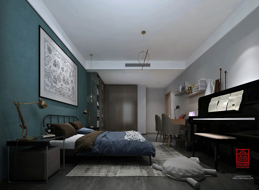 本案是taptapvip入口装饰-荣盛华府178平米现代简约风格装修效果图。做减法的卧室设计。在“断舍离”思想繁盛的今天,减法设计用最简洁设计表达最核心实用性。