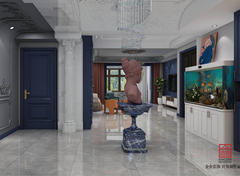 石家庄装修公司-荣盛华府178平米美式轻奢风格装修效果图。有一种奢华崇尚匠心独具的精致与尊贵有一种风格凝聚华贵典雅与浪漫气息似细腻柔美的情歌似宫廷奢华的极致轻盈而华丽,细腻而优雅永恒的时尚,曼妙的身姿。如同时空穿越,既有十五世纪法式的奢华,又有当代轻奢的艺术手法,从古希腊已有的科林斯柱式到现代极简的柔美线条,是个时代的碰撞与融合。这种浪漫情调为家赋予了万种风情。