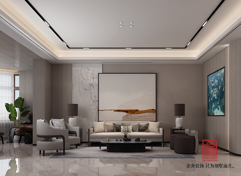 此案例为石家庄taptapvip入口装饰-荣盛华府205平米中式轻奢装修效果图。