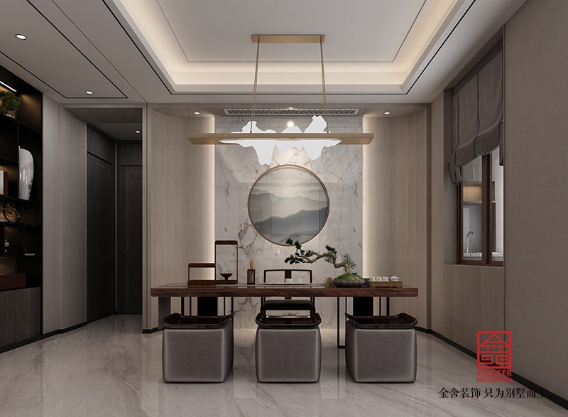 餐区品茶内弧造型,怀抱自然,包罗万象,展现男主人的豪迈气质。