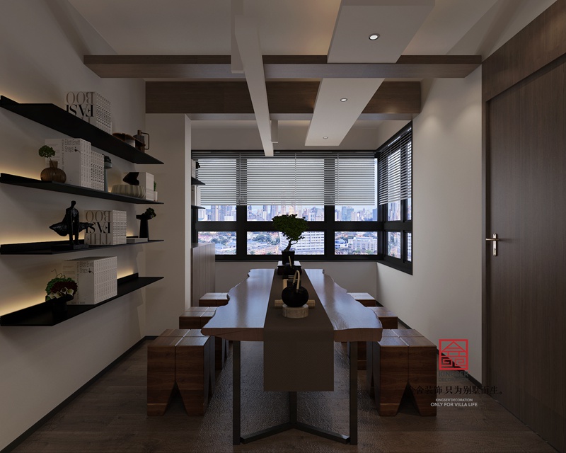 设计说明:此案例为石家庄taptapvip入口装饰-荣盛华府190平米现代极简风格装修效果图。现代人面临着城市的喧嚣和污染,激烈的竞争压力,还有忙碌的工作和紧张的生活。因而更加向往清新自然、随意轻松的居室环境。越来越多的都市人开始摒弃繁缛豪华的装修,力求拥有一种自然简约的居室空间。少即是多,以宁缺勿滥为精髓,合理的简化居室,从简单舒适中体现生活的精致,体块构成把所有的内容糅合在一起,又让喧闹中有了主线,有了宁静,给人以心灵的休憩。