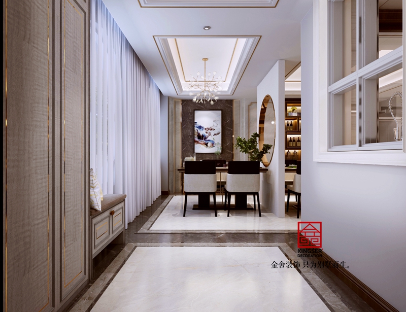 与传统的表现禅意的手法不同的是,此次在材质的选择上,摒弃了常用的低反光、粗朴质感的材料,而使用较为细腻、缜密的木及金属等等。空间的整体气质显得更为精致与高贵。