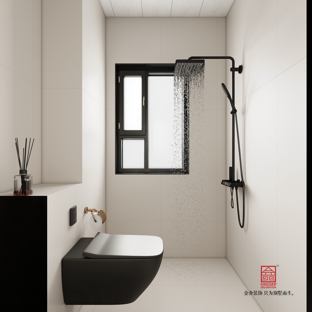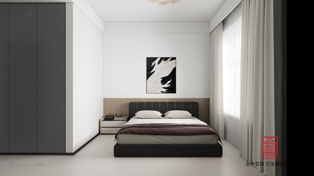 以白色为主色调的墙面与浅色地板相结合,营造出一种明亮、开阔的视觉效果。灰色沙发与深色地毯形成对比,既增加了空间的层次感,又赋予了空间一份宁静与雅致。黑色的电视柜、茶几等家具点缀其间,使整个空间在保持简洁的同时不失亮点。