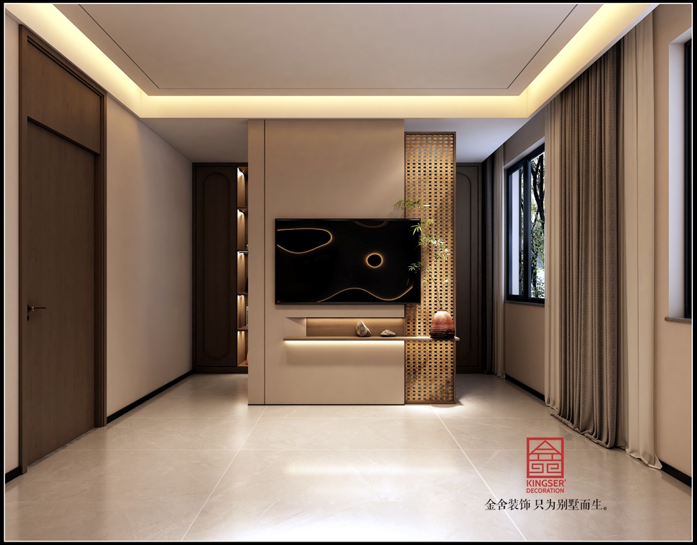 本方案聚焦新中式客厅设计,以传承与创新为核心思路。空间摒弃繁杂造型,借简约线条勾勒框架,浅棕、米白等低饱和色调铺陈,营造温润、舒缓氛围,契合现代人居对宁静感的追求。